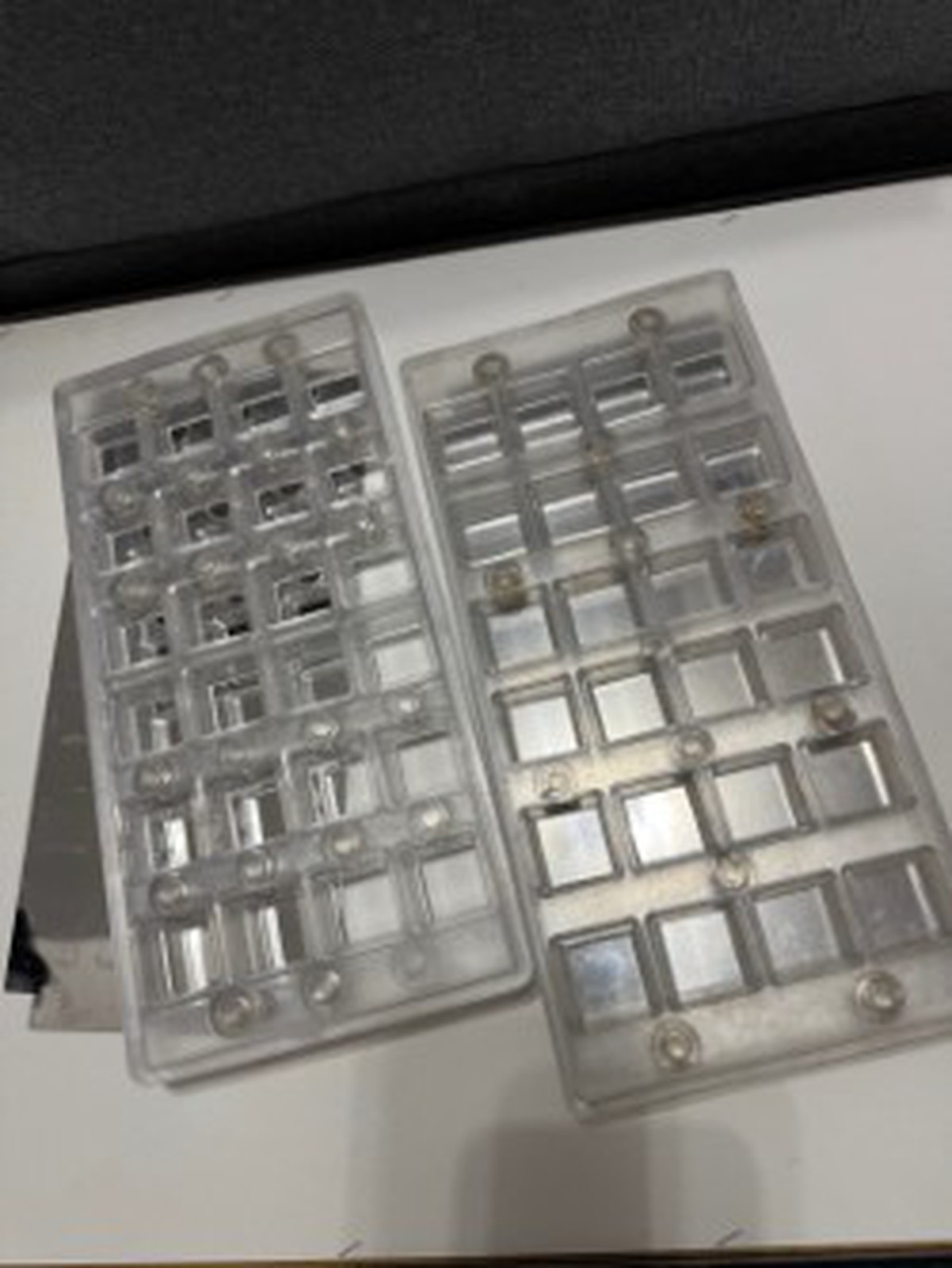 Large mixed large box of many tens of chocolate transfer sheets for use with magnetic moulds, or overlay on normal moulds, or use freehand; also great for workshops)