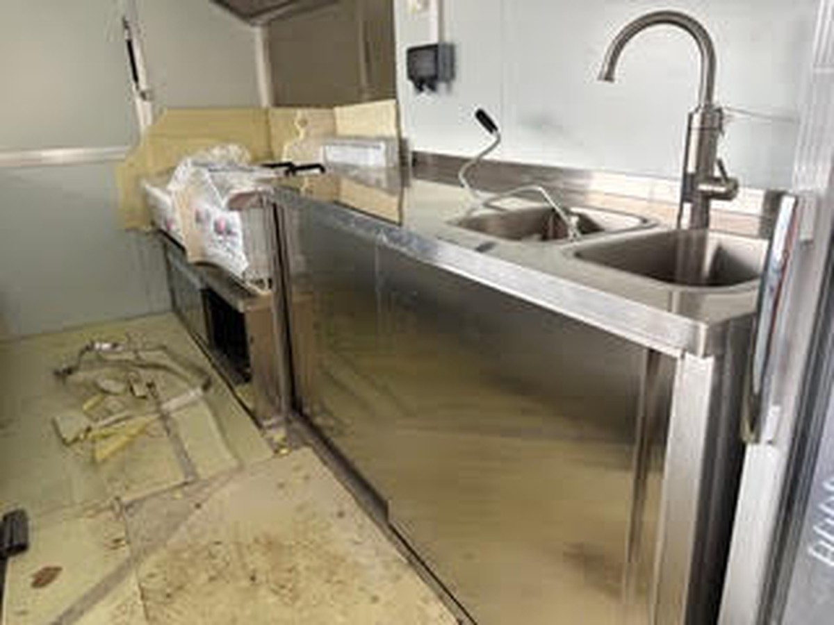 This 4m trailer comes with double under counter fridges, double under counter freezers, upright fridge, 4 ring gas hob, griddle, double chip fryer, gas and electric certificates.Click here for more products from this seller